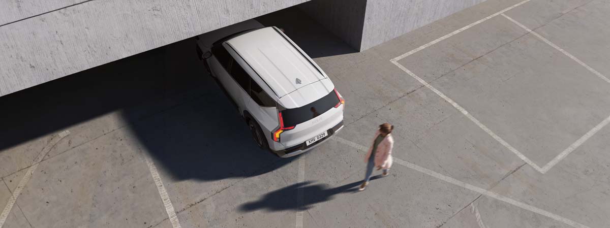 首先在外观上这款家族旗舰使用了原厂最新的 Opposite United 设计元素,可以看到它整个设计是非常前卫和科幻的,仿佛是科幻片里的未来座驾一般,在前脸原本传统内燃机车款上的水箱护罩位置是一整片的封闭式设计,而在水箱护罩旁边就有数字照明格栅,点亮时会有一格一格的设计,配合上精致的头灯组有着很高的识别度,至于车侧就有着硬朗的线条设计,尤其是后座乘客门那里开始突出的宽体设计,更是给到你一种它是一辆军车一般的视觉效果,而尾灯就有和前脸的日行灯相呼应的设计,并且整个尾门的设计十分简洁,另外由于这一次在本地引进的 EV9 都是顶规的 GT-Line 车型,因此可以看到车身周围都有黑色的饰条点缀,让它看起来更加地帅气。