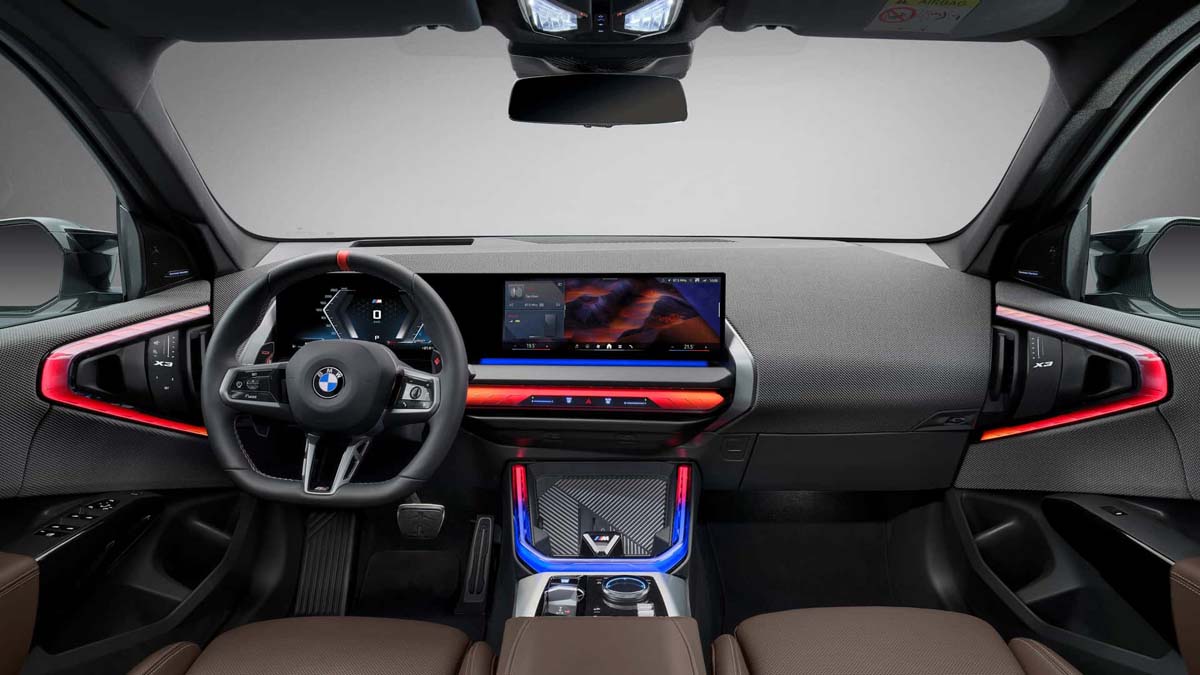 内饰方面,新款X3配备了宝马曲面显示屏和最新的iDrive 9信息娱乐系统,这些都是首次在2024年款宝马X1上推出的。新车还增加了许多新功能,例如QuickSelect,它允许驾驶员在不需要深入子菜单的情况下快速访问最常用的功能。