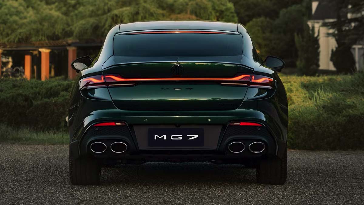 MG 7轿车的尺寸为长4884 mm、宽1889 mm、高1447 mm,略小于 Toyota Camry ,与 Mazda 6 的尺寸相当。MG 7 倾向于展现MG品牌的运动特性,这在其出口产品中并不常见,例如在澳大利亚销售的MG3、MG ZS和MG HS。为此,MG 7拥有运动型轮廓、激进的四出排气管、大号合金轮毂以及后轮拱上的肌肉凸起。MG 7搭载的是新一代2.0升涡轮增压四缸发动机,输出功率为257 Hp/405 Nm,匹配九速自动变速箱(实际上也有1.5L涡轮选项)。
