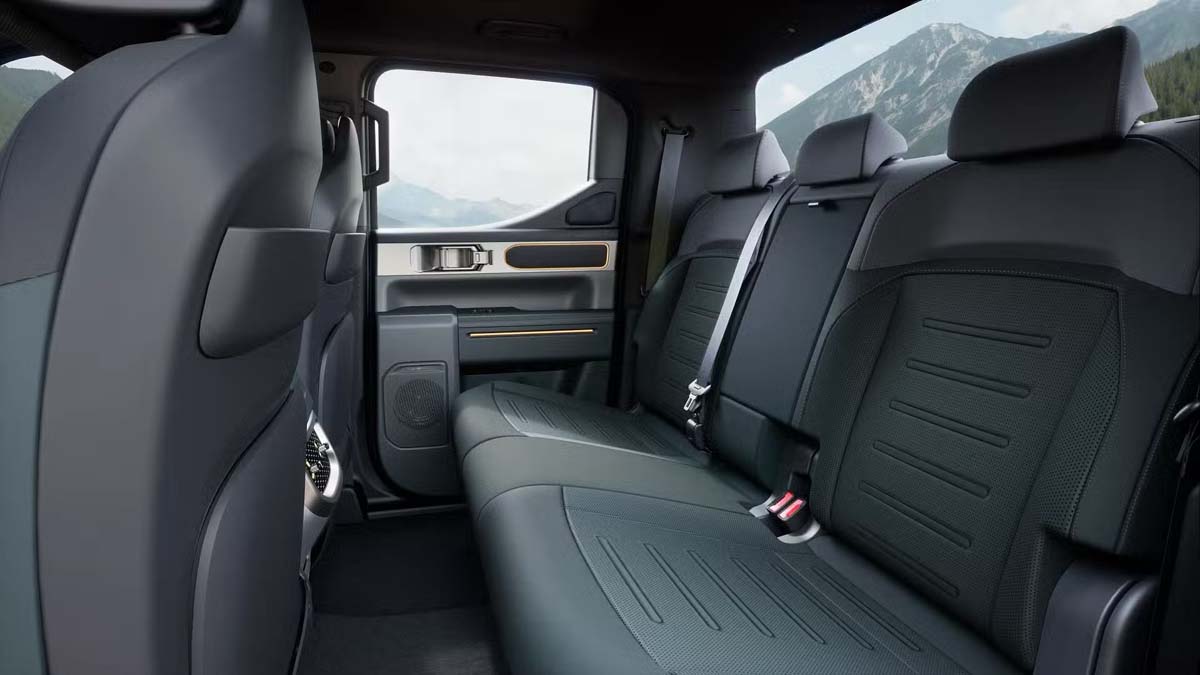 Tasman 的牵引力更是亮点,具有3500公斤的刹车拖曳能力,并且提供超过一吨的载重表现,适合商业与户外用途。Kia Tasman 的长度5410 mm、宽度1930 mm,且高配版本 X-Pro 版本具备252 mm的离地间隙,为严苛的越野环境提供更强的通过性。它的双叉臂前悬挂搭配叶片弹簧后悬挂,并配有多种驾驶模式,包括沙地、泥泞和雪地模式,甚至有专为中东市场开发的沙漠模式
