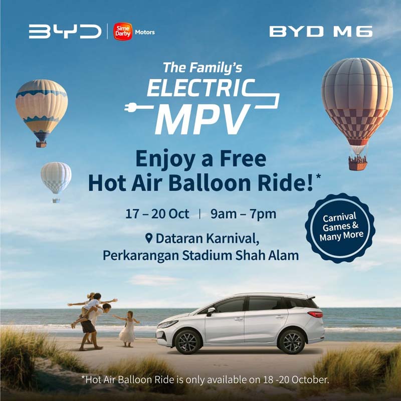 电动MPV市场在马来西亚的竞争日益激烈,BYD M6凭借其一款全新推出电动MPV一举成为焦点。该车不仅以合理的价格吸引消费者,更是在空间、安全配备、动力、续航能力以及价格五大方面表现卓越。如果大家对全新的 BYD M6 有兴趣的话,BYD 将于 2024 年 10 月 17 日至 20 日在莎阿南的 Dataran Karnival, PerkaranganStadium Shah Alam 举行展览,你可以免费体验与试驾全新的 BYD M6,同时活动当天也会有热气球 / 户外游戏 / 咖啡 / 赠送礼品 / 购车优惠(须符合条规)。