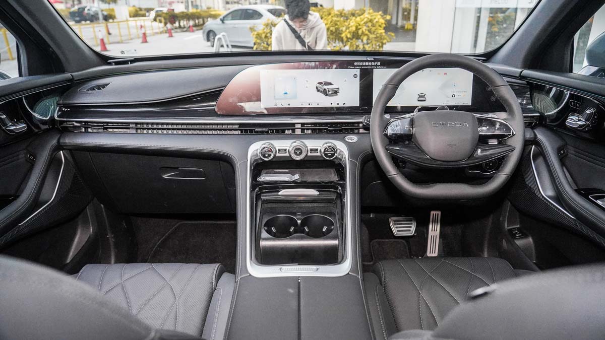内饰方面,Omoda C9采用了豪华且现代的设计风格。中控台搭载了24.6英寸高清双联屏,支持触控操作,并内置最新的智能车机系统,兼容Apple CarPlay和Android Auto。三区自动空调系统具备PM2.5空气净化功能,同时配备香氛系统和空气质量监测仪,为用户提供健康的车内环境。