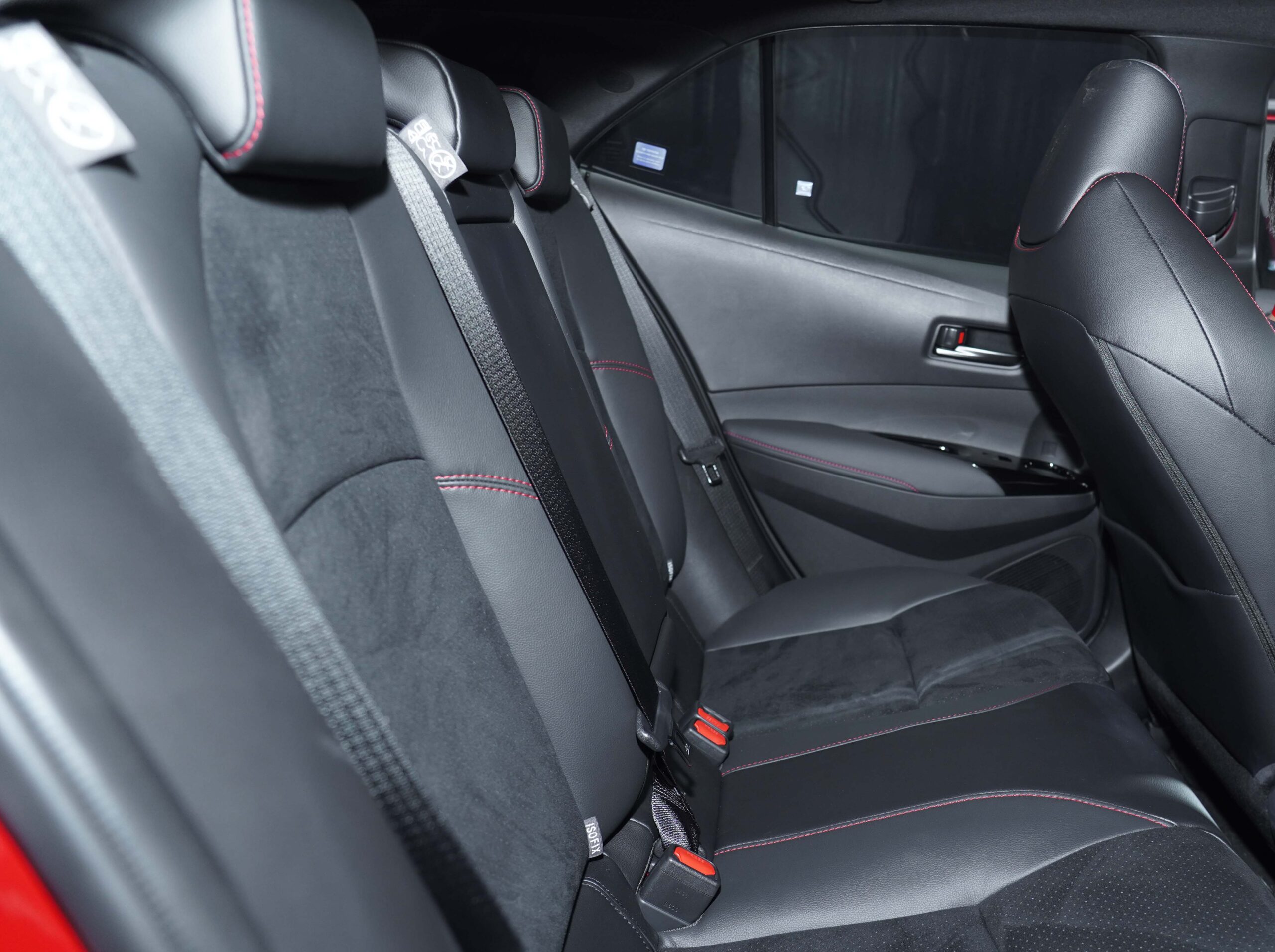 GR Corolla 的内饰设计以驾驶者为中心,简洁而实用。前方配备了抬头显示器(HUD),可在前挡风玻璃上显示车速、引擎转速和 Toyota Safety Sense 信息,确保驾驶者无需低头查看仪表盘即可获取关键信息。