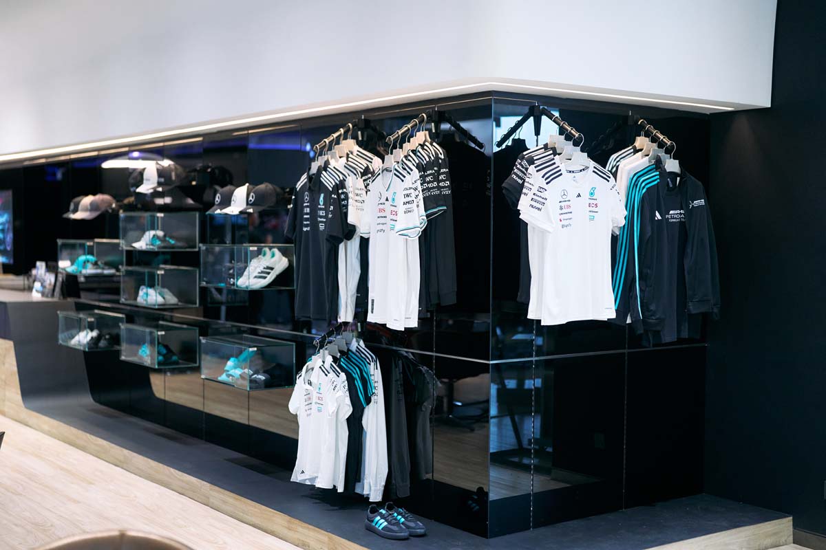 车迷服饰:为了凝聚赛车运动社区与 Mercedes-AMG PETRONAS F1 车队,系列中还推出了专为车迷设计的服饰和车手粉丝服饰系列,为热情的车迷提供了多种支持车队的穿搭选择。该系列融合了街头潮流与赛车文化的影响,包括家居服、连帽衫、上衣及T恤,并且稍后还将推出更多专属车手的粉丝服饰。
