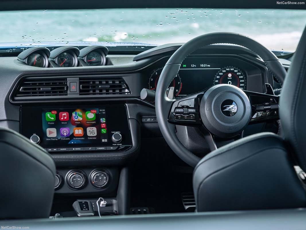 进入车内,Nissan 400Z的内饰兼顾了运动感与舒适性。驾驶舱以驾驶者为中心,配备12.3英寸全液晶仪表盘,提供清晰的行车信息。中控区域设有8英寸触控液晶屏,支持CarPlay和Android Auto,方便与智能手机连接。座椅采用皮革与织物混搭材质,提供良好的支撑性和舒适度。