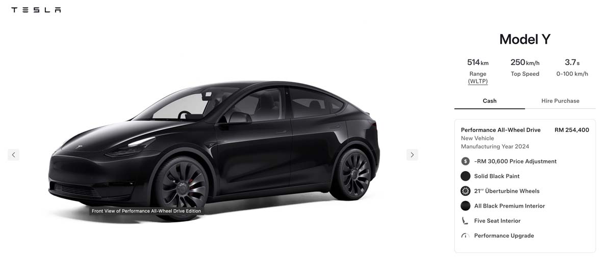 Tesla Model Y Performance 库存车优惠:0-100加速3.7秒、WLTP 续航514 km,现在只需要RM 254,400