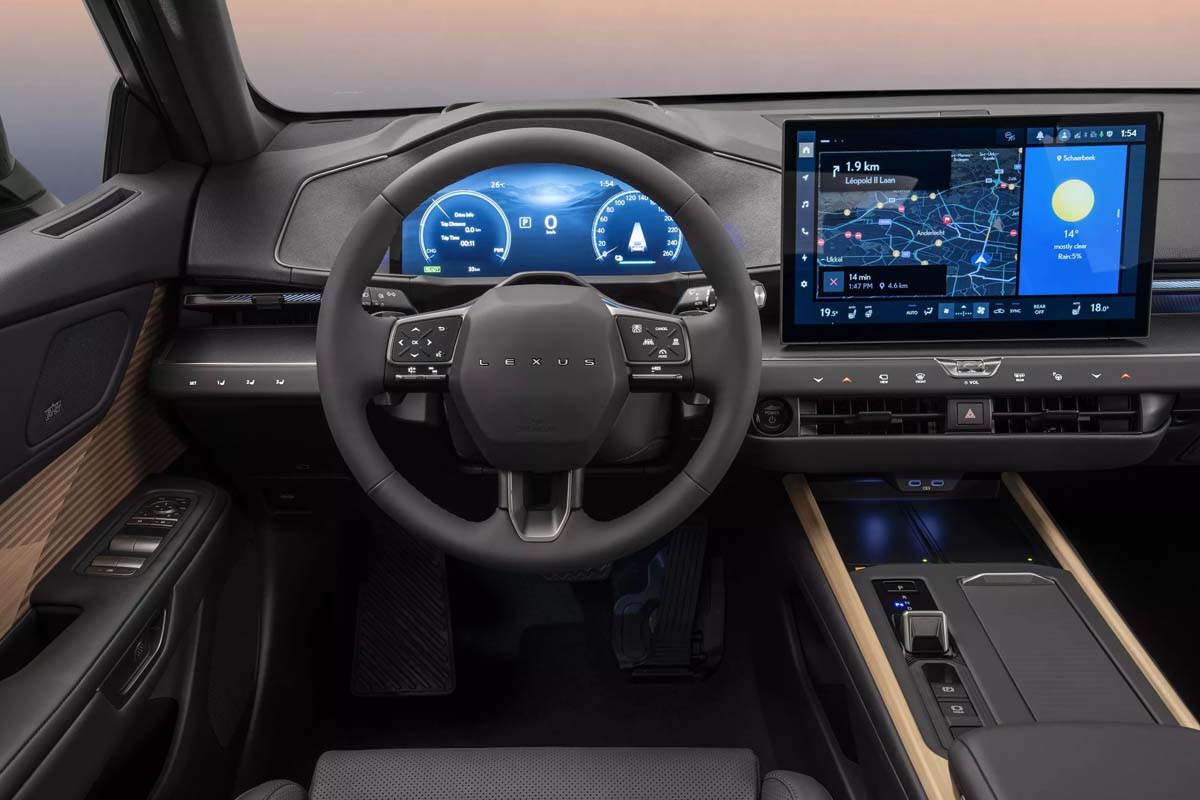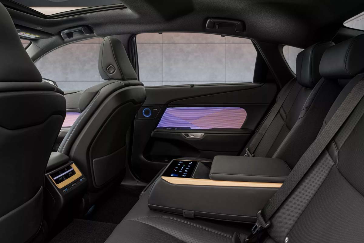 全新一代的车型采用最新的设计风格,虽然车头依旧保留Lexus标志性纺锤形格栅,不过采用与车身同色的整体式处理,使视觉效果更为简洁流畅。混动版车型在格栅上增设通风细缝,兼顾散热与美感;而纯电版则以极简前脸示人,格栅区域几乎全封闭。车身侧面,165 mm加长后的车身与80 mm加大的轴距配合顺滑的快背式溜背设计,不仅令车内空间更为宽敞,也让整车侧影更富运动气息。尾部一条贯穿式LED灯带与锋利的肩线相互映衬,塑造出更具冲击力的尾部造型。