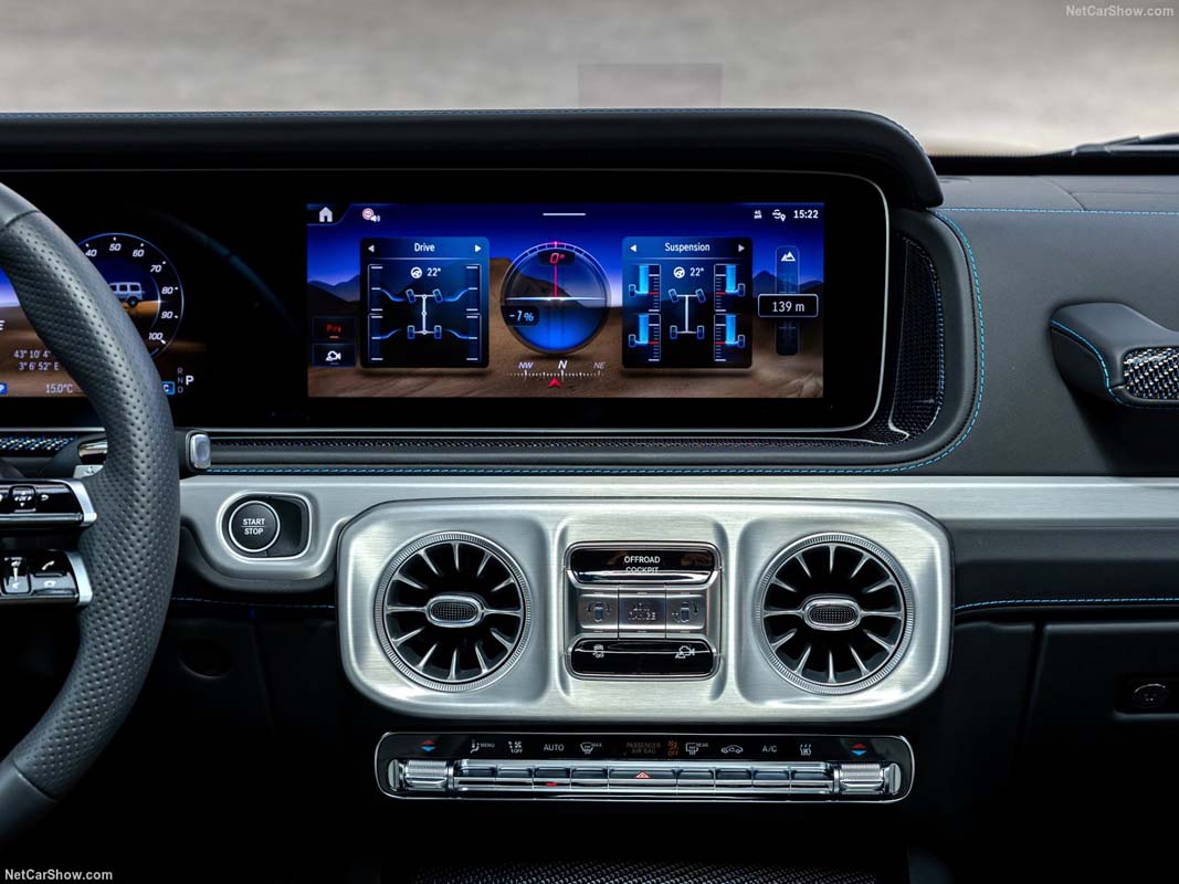 内饰方面,G580延续了Mercedes-Benz一贯的豪华与科技感,搭载了双12.3英寸高清屏幕组成的MBUX信息娱乐系统,并提供独特的G-ROAR声浪模拟功能,为驾驶者在纯电驱动下依然能体验到激动人心的听觉反馈。