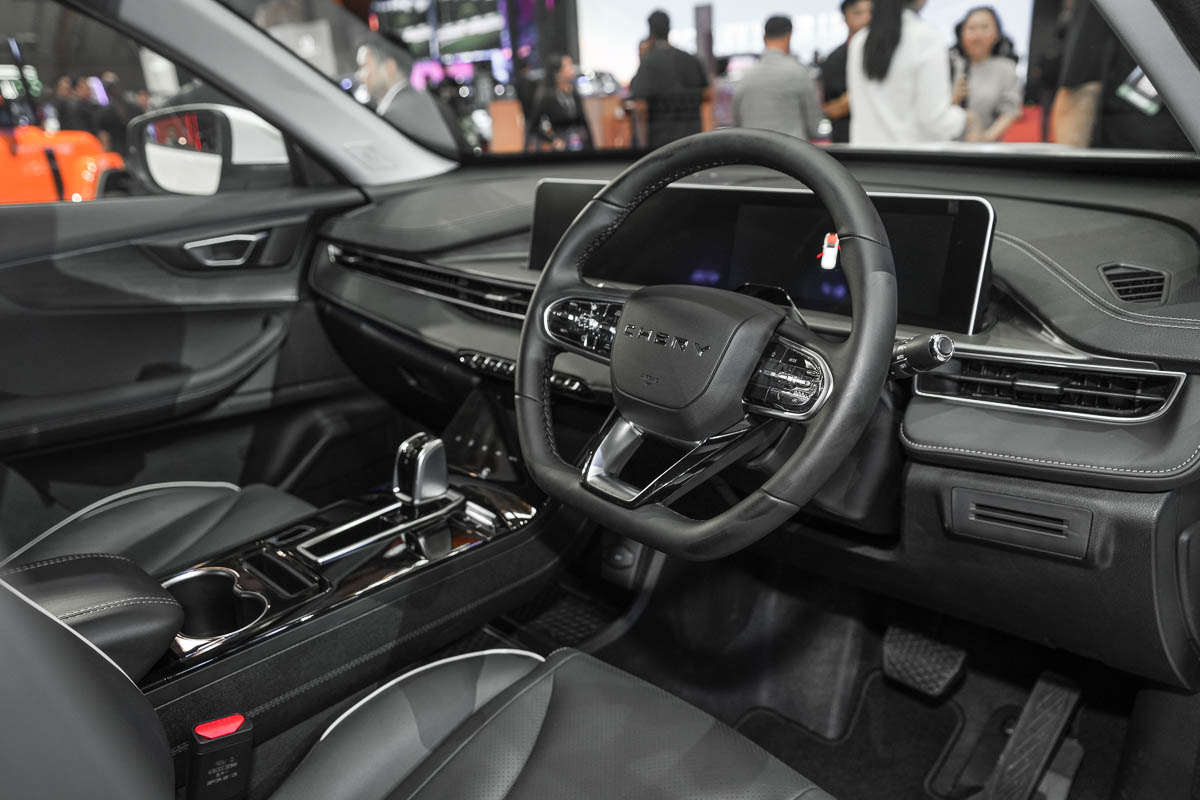 进入车内,Tiggo Cross的内装布局同样充满科技感。最引人注目的是由10.25寸数位化仪表盘和10.25寸中央娱乐资讯触摸屏组成的双联屏设计,支援Apple CarPlay和Android Auto手机连接功能。此外,新车还配备了皮革座椅、车内氛围灯、无线充电面板以及后座冷气出风口等实用配置。