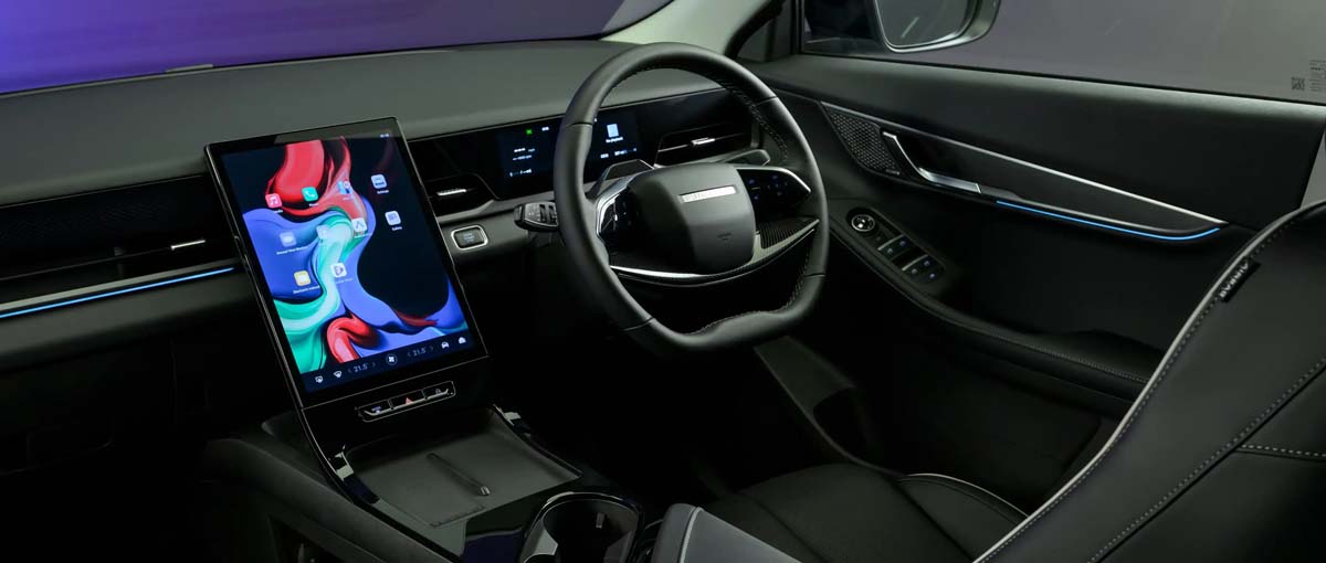 • 荧幕尺寸: 中控台搭载了一块13.2英寸的直立式触控信息娱乐荧幕,集成了导航、娱乐及车辆设置等多种功能,并支持无线Apple CarPlay和Android Auto。驾驶座前方则配有全液晶数码化仪表盘,提供清晰的行车资讯。