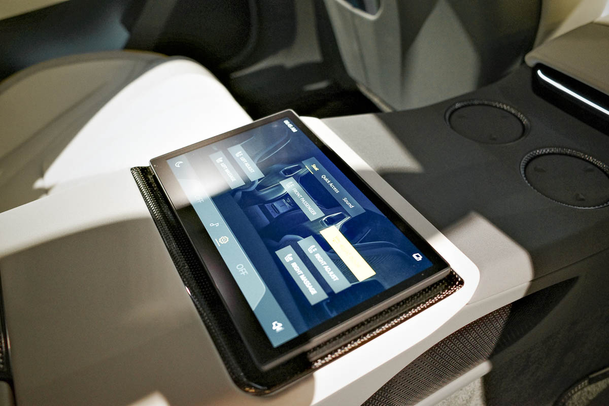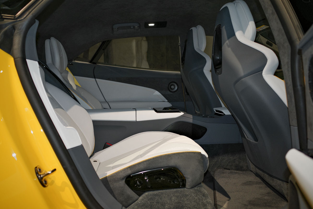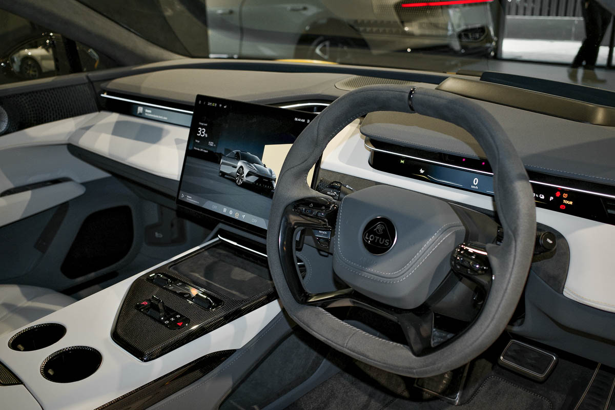 - Emeya 600 (标准版) 标配已相当丰富,包括主动式空气悬挂与连续阻尼控制(CDC)、20寸轮圈、刹车扭力分配系统以及矩阵式LED头灯。车内则配备了KEF Premium 15扬声器高级音响系统、29寸抬头显示器、四区恒温空调和LotusWear Performance织物座椅。