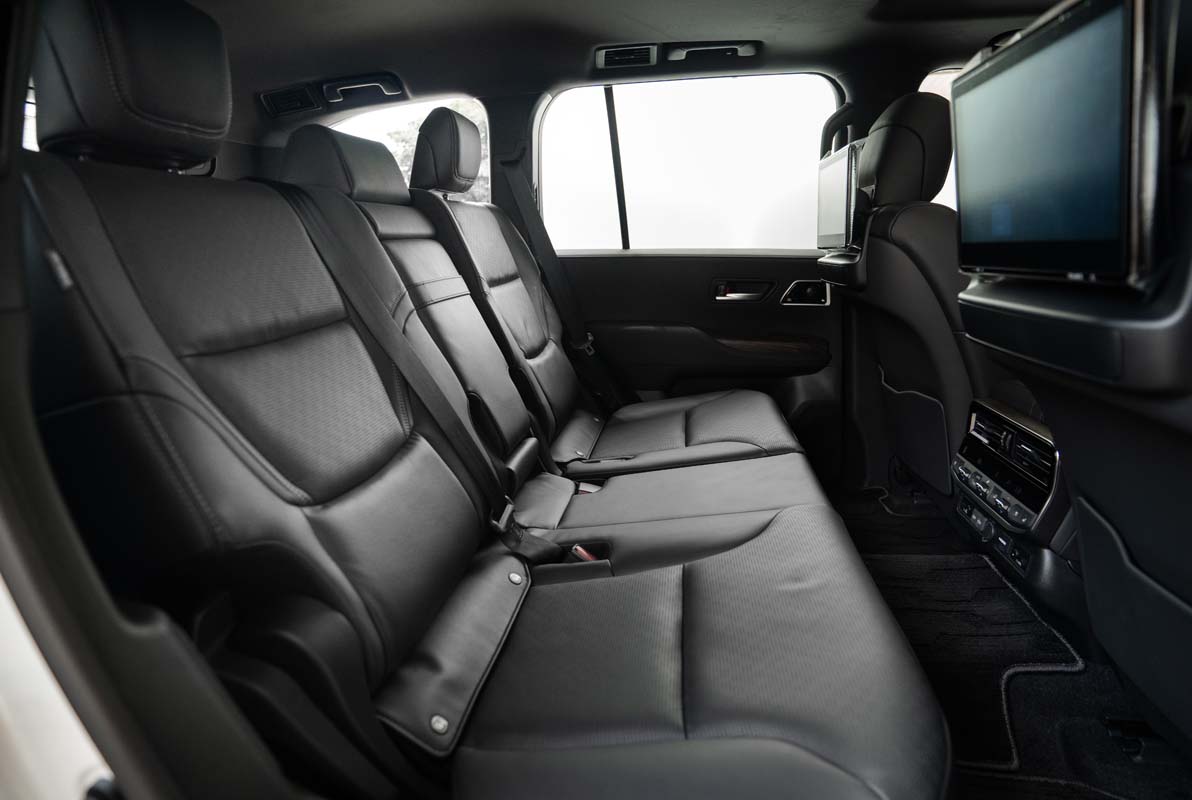 坐进车里,三款车的区别就更大了。LC300 的内饰非常实用,但风格保守,科技感一般 。 GLC 300 内饰精致,科技感出色,但空间是其硬伤 。作为一辆五座车,后排和尾箱容量对家庭用户来说相当局促 。