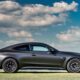 车身侧面,流畅的 Coupé 轮廓和无窗框设计尽显优雅姿态。然而,前后轮拱都经过了明显的加宽处理(前轮加宽 58mm,后轮加宽 75mm),肌肉感十足的线条清晰地勾勒出其强大的性能潜力。脚下踩着的是 AMG 轻量化合金轮圈,标准配置为 19 寸,并可选配至 20 寸,其后方显露的 AMG 高性能刹车系统更是性能的保证。