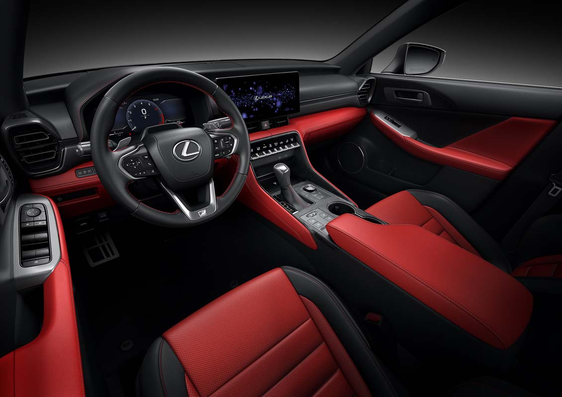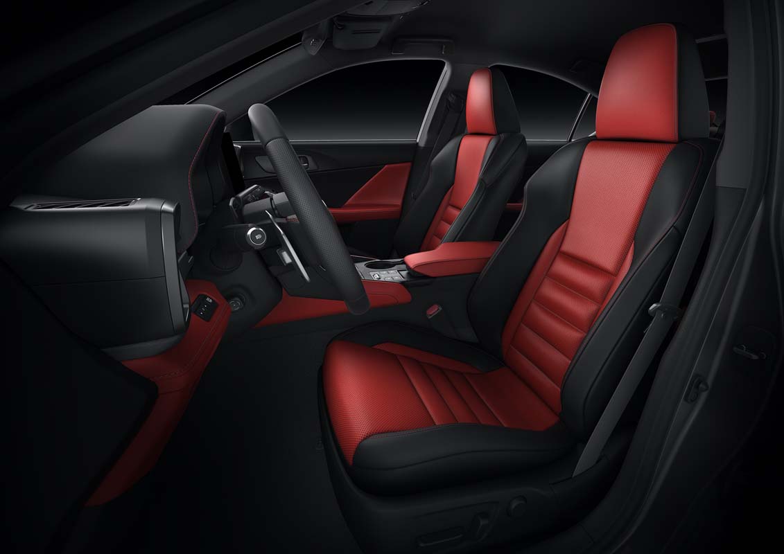 在内饰设计方面,全新开发的“Forged Bamboo”(锻造竹)饰板被应用于中控台上方和启动按钮边框。天然竹纤维创造出独特的“阴翳”光影效果,捕捉了 IS 的动态能量。此外,新增的内饰颜色“Prominence”灵感来源于太阳耀斑的鲜明光芒,营造出一种更具侵略性和运动感的座舱氛围。