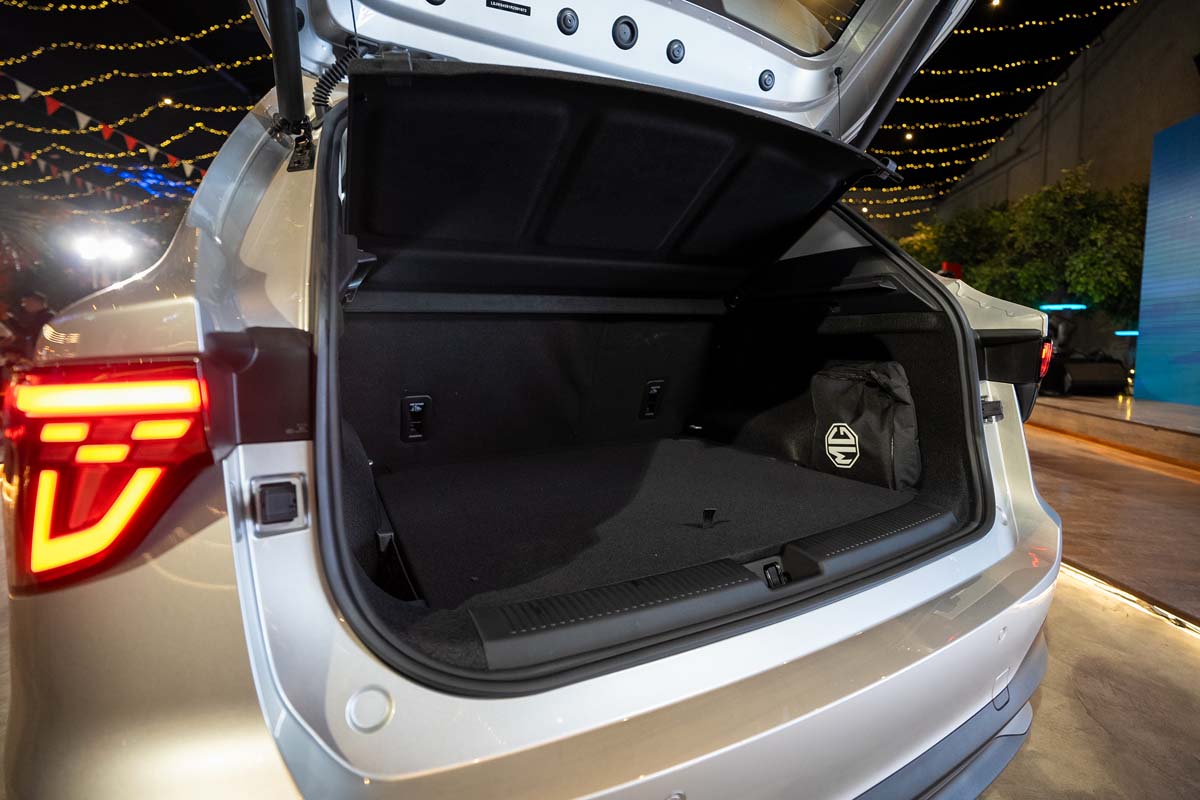 外观设计延续了 MG 的年轻与动感风格,前脸以封闭式格栅结合“赛车旗帜”造型的日间行车灯(DRL),尾部则采用品牌标志性的拱形尾灯(Arch Taillights),整体视觉辨识度极高。内饰部分,LUX Long Range 版本搭载 12.8 吋中控触控屏、10.25 吋全数位仪表板,并支持语音控制与无线 Apple CarPlay / Android Auto。高配车型配有全景天窗、18 吋铝合金轮圈、打孔皮布座椅、电动调节驾驶座、加热真皮方向盘、无线充电板、六扬声器音响、电动尾门及 360° 环景影像系统,让整体体验更具豪华感。
