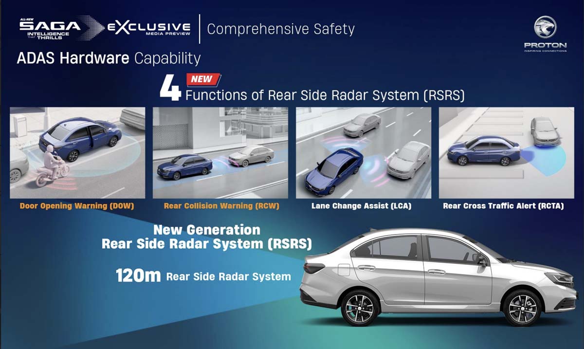 Proton 没有只做前方保护,后侧也大幅加强。120 米侦测范围的全新 RSRS 后侧雷达,为 Saga 带来四项同级罕见、甚至独有的功能: