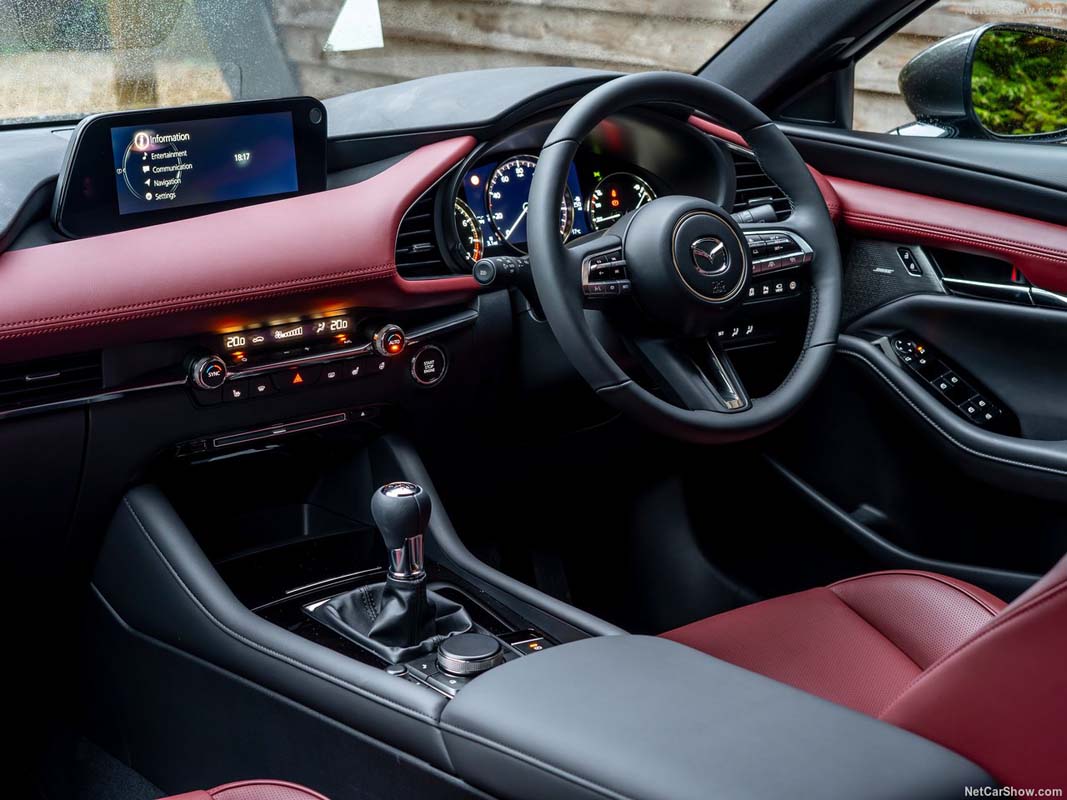 走进 Mazda3 的车内,依然可以明显感受到它在同级车型中的“高级感优势”。Mazda 采用以驾驶者为核心的座舱布局,整体设计既简洁又扎实,触摸得到的地方大多使用软质覆盖,氛围营造甚至让人误以为自己坐进了更高阶的车型。
