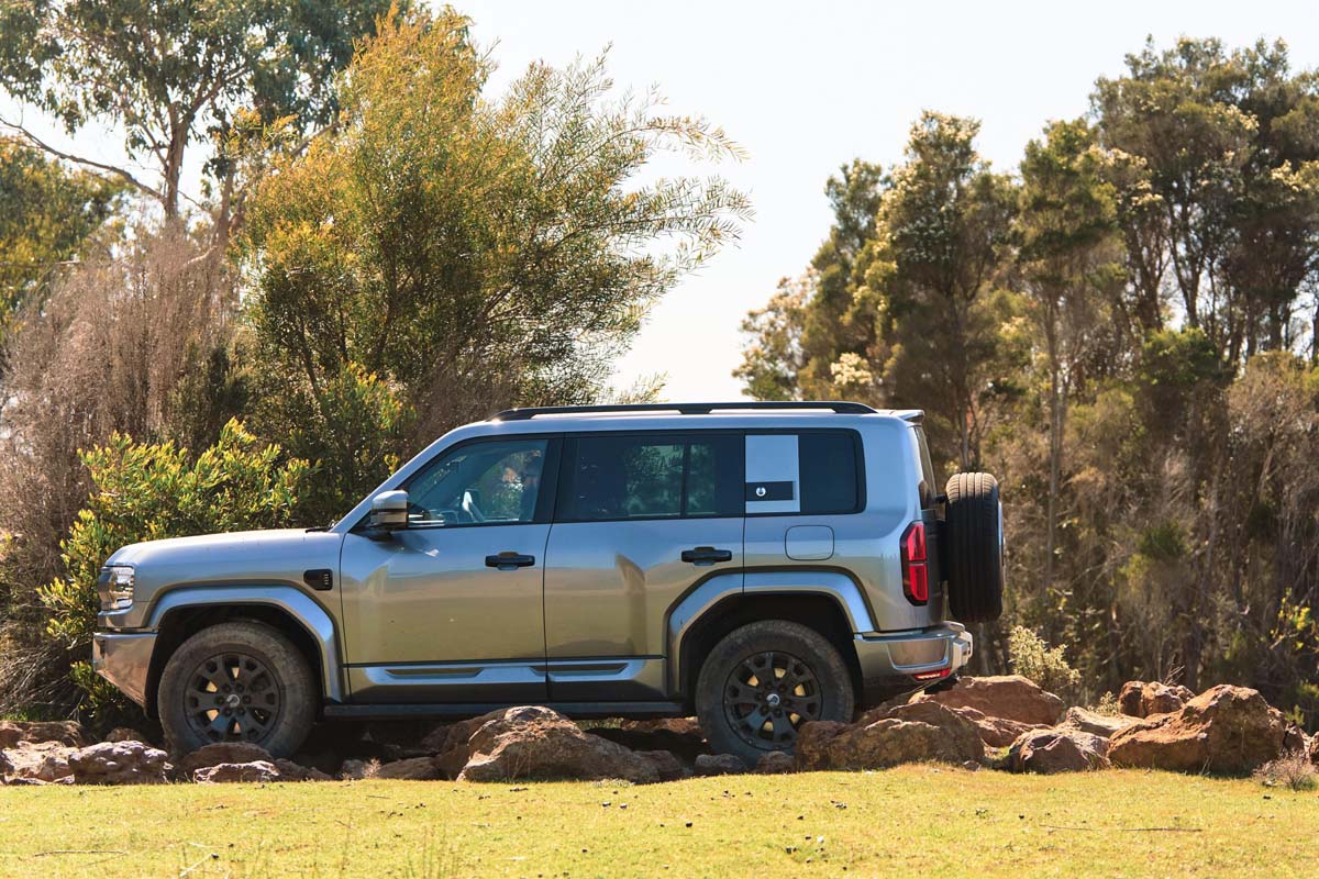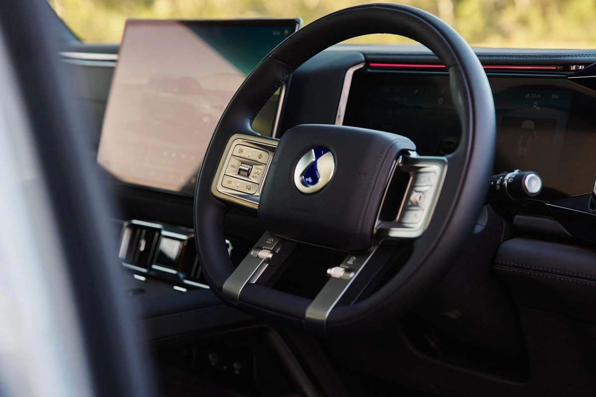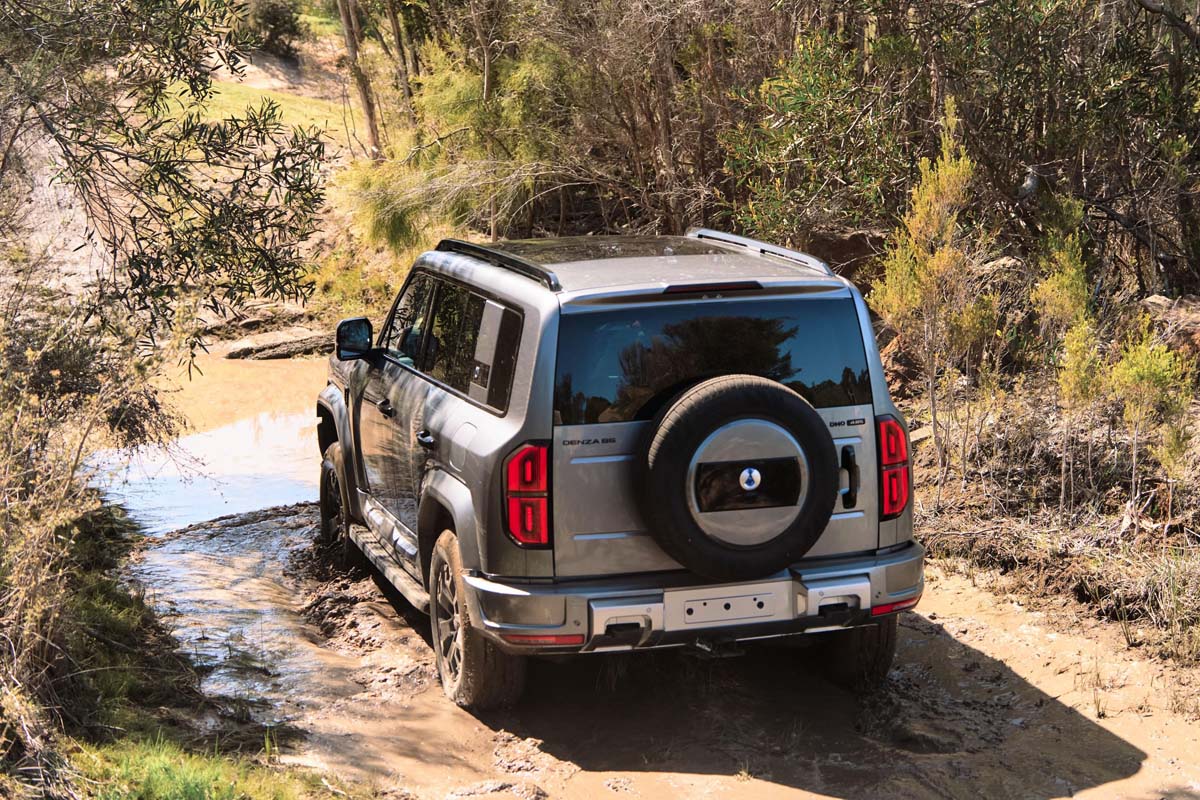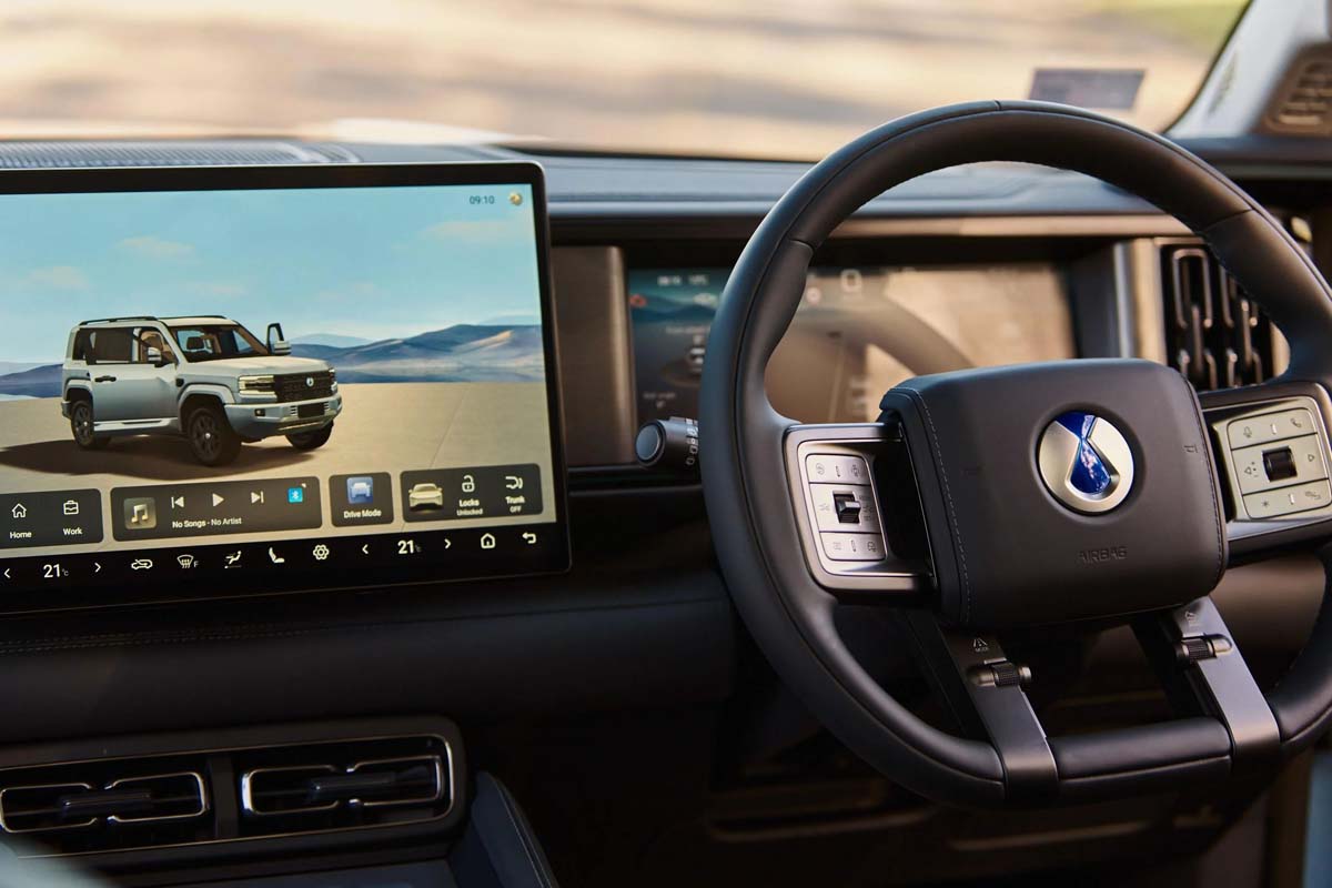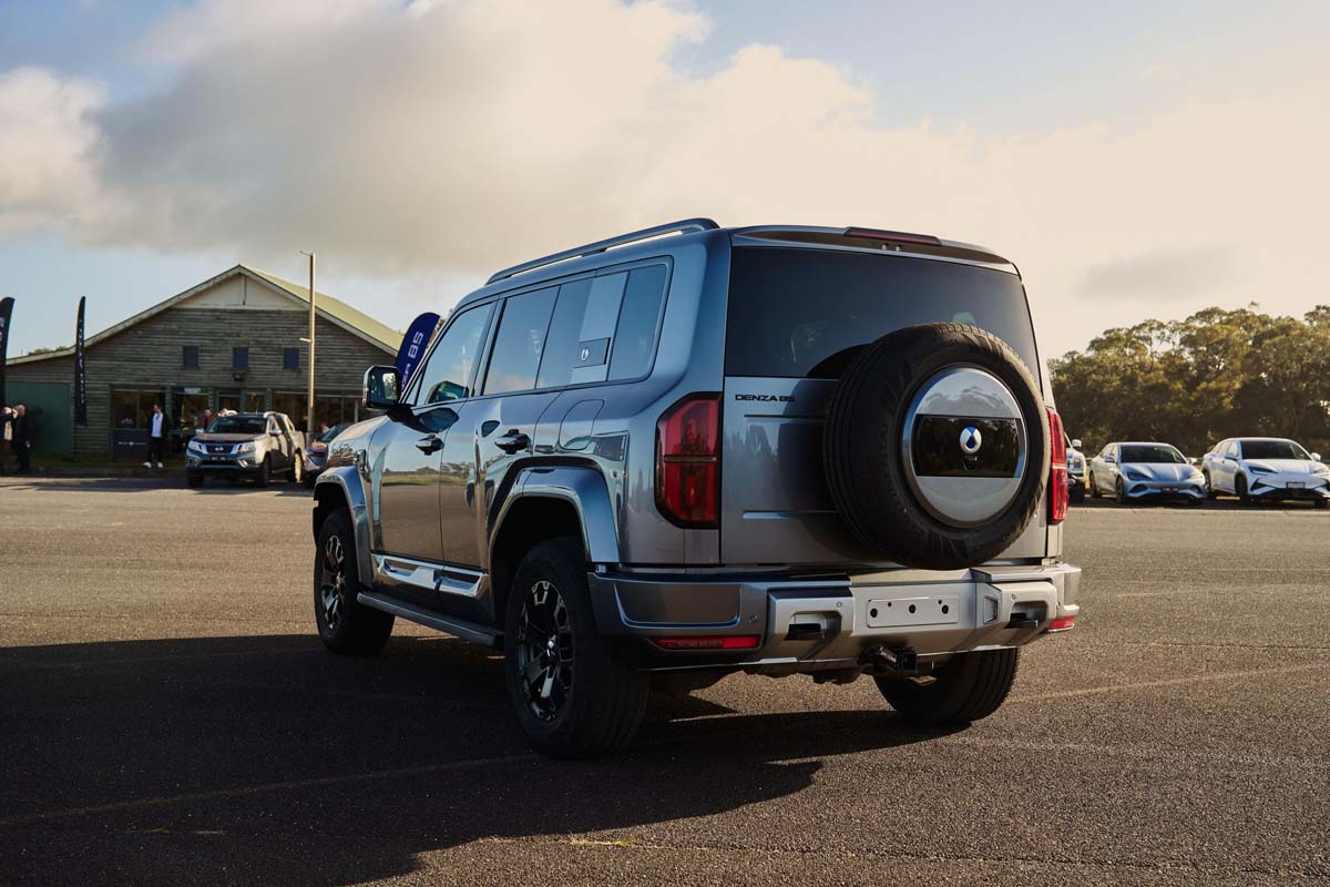 参考澳洲市场版本资料,Denza B5 的车身尺码已进入中大型 SUV 级别,车长接近 4.9 米,车宽约 1.97 米,轴距超过 2.8 米。这样的体格不只是为了气势,也为悬挂行程、越野结构以及电池布局提供了充足空间,对长途旅行或家庭使用同样友好。