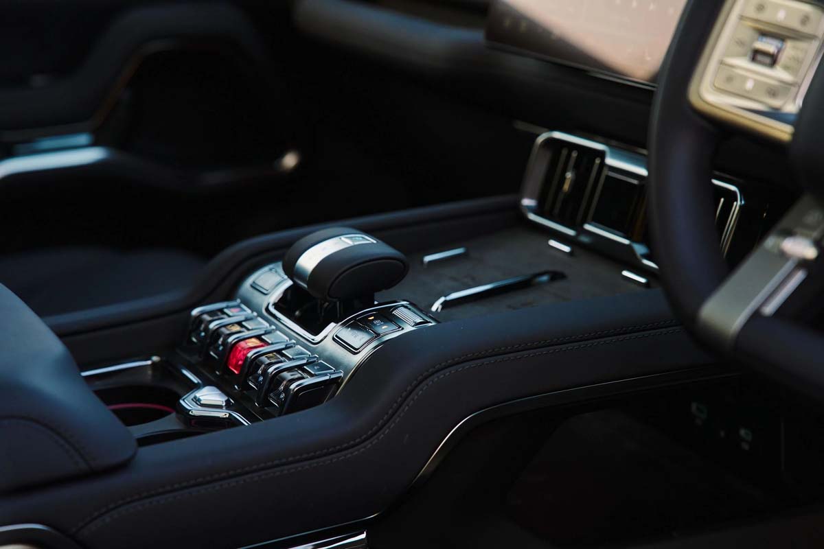 真正让 Denza B5 与传统硬派 SUV 拉开差距的,是它的动力系统。它采用插电式混合动力架构,引擎搭配前后电机共同输出,综合功率达到 425 kW,换算约为 570 Hp,同时最大扭力高达 760 Nm。这个级别的输出,已经足以与不少高性能燃油 SUV 正面对抗,而 Denza B5 还标配全轮驱动系统,并具备前后电子差速锁,在越野脱困与低速攀爬时更具优势。