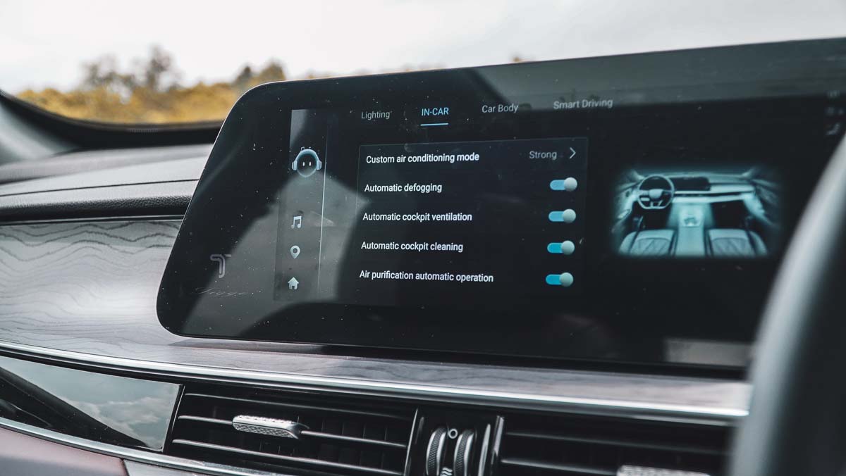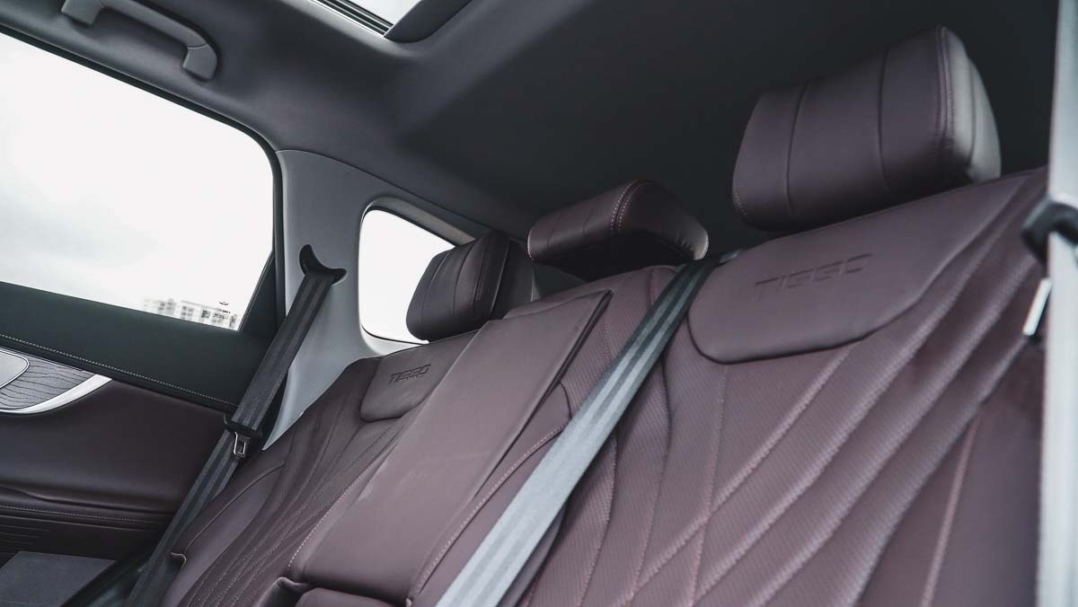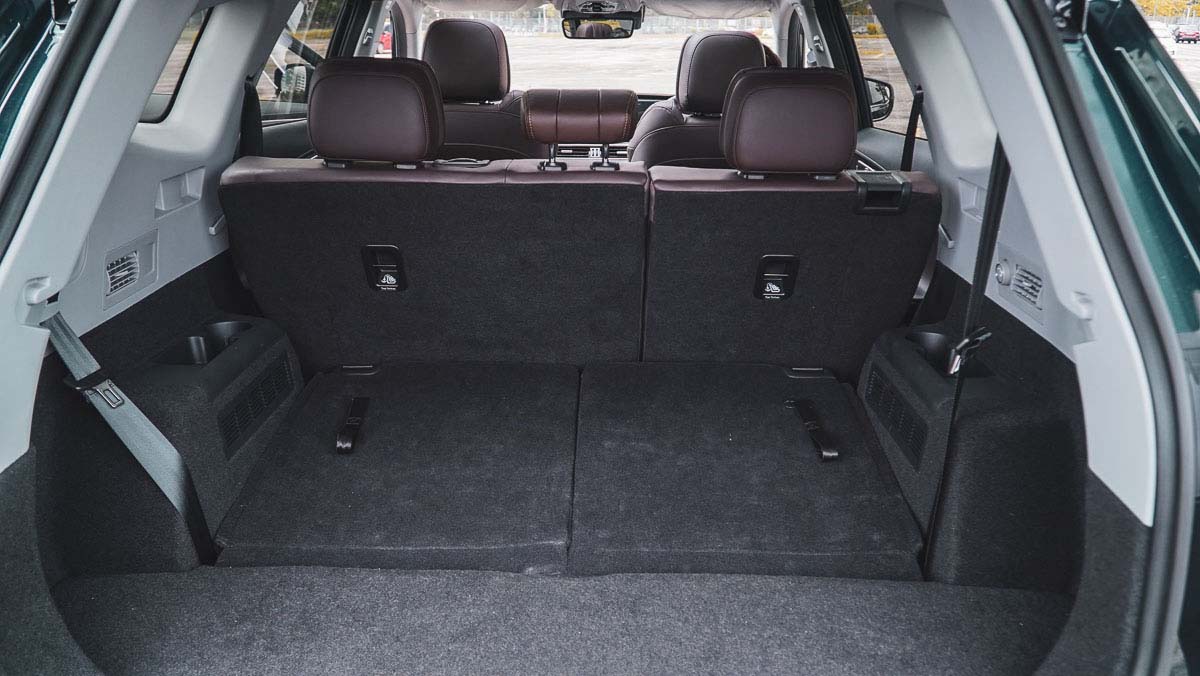 内装和空间同样是 Tiggo 8 Pro 的亮点。一上车就能看到 双 12.3 寸全数位仪表与中控屏,触控式冷气控制区让科技感满满。车内用料偏向软质与皮革,前排座椅支持 电动调节与通风功能。第二排空间宽敞,第三排短途乘坐完全够用,后备箱在三排座椅放倒后也能提供不错的载物能力,非常适合家庭日常使用或过年返乡。