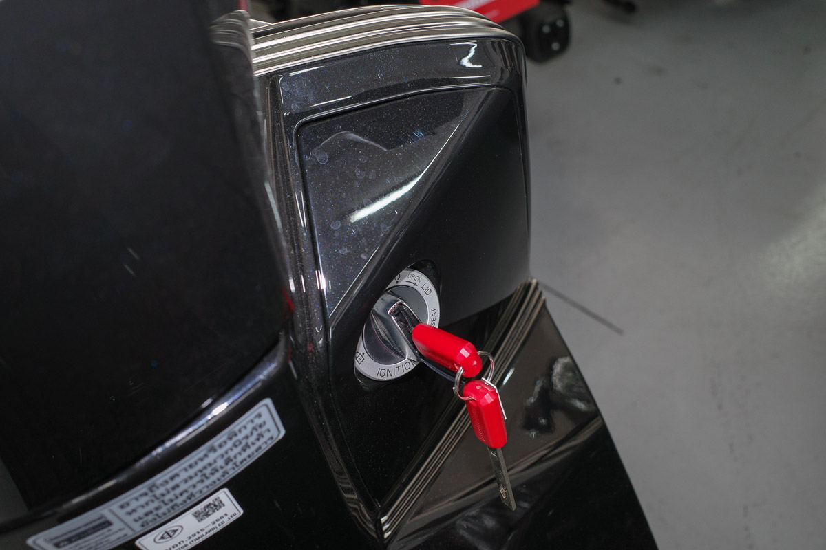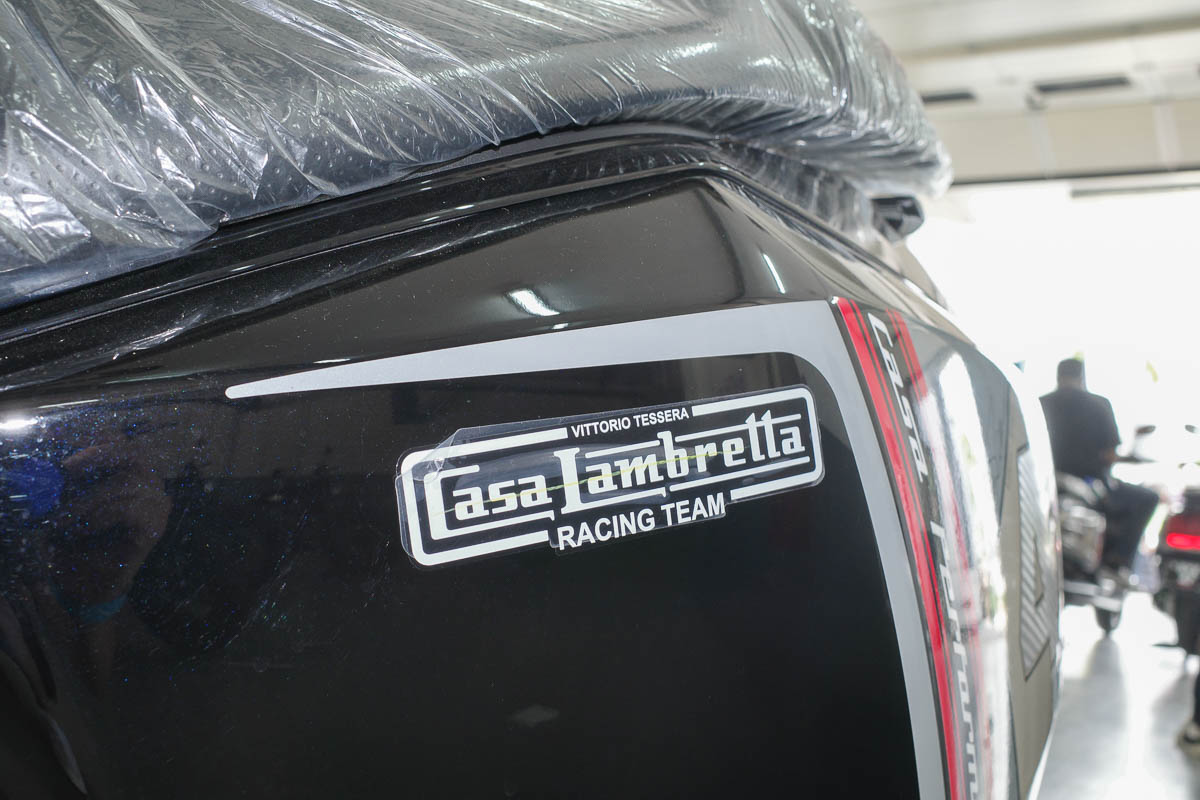 X300 Casa 并不是单纯换个颜色就叫限量版的操作,而是 Lambretta 与 CASA Lambretta 文化与赛车团队合作打造的特别版本,核心精神围绕着品牌的赛车历史与经典文化展开。整辆车在视觉上明显比标准版 X300 更有侵略性,专属涂装搭配独特拉花与徽章,让人一眼就能认出它的“限量身份”。车身上还能看到专属编号铭牌,每一台都有自己的编号,这一点对收藏玩家来说尤其重要。
