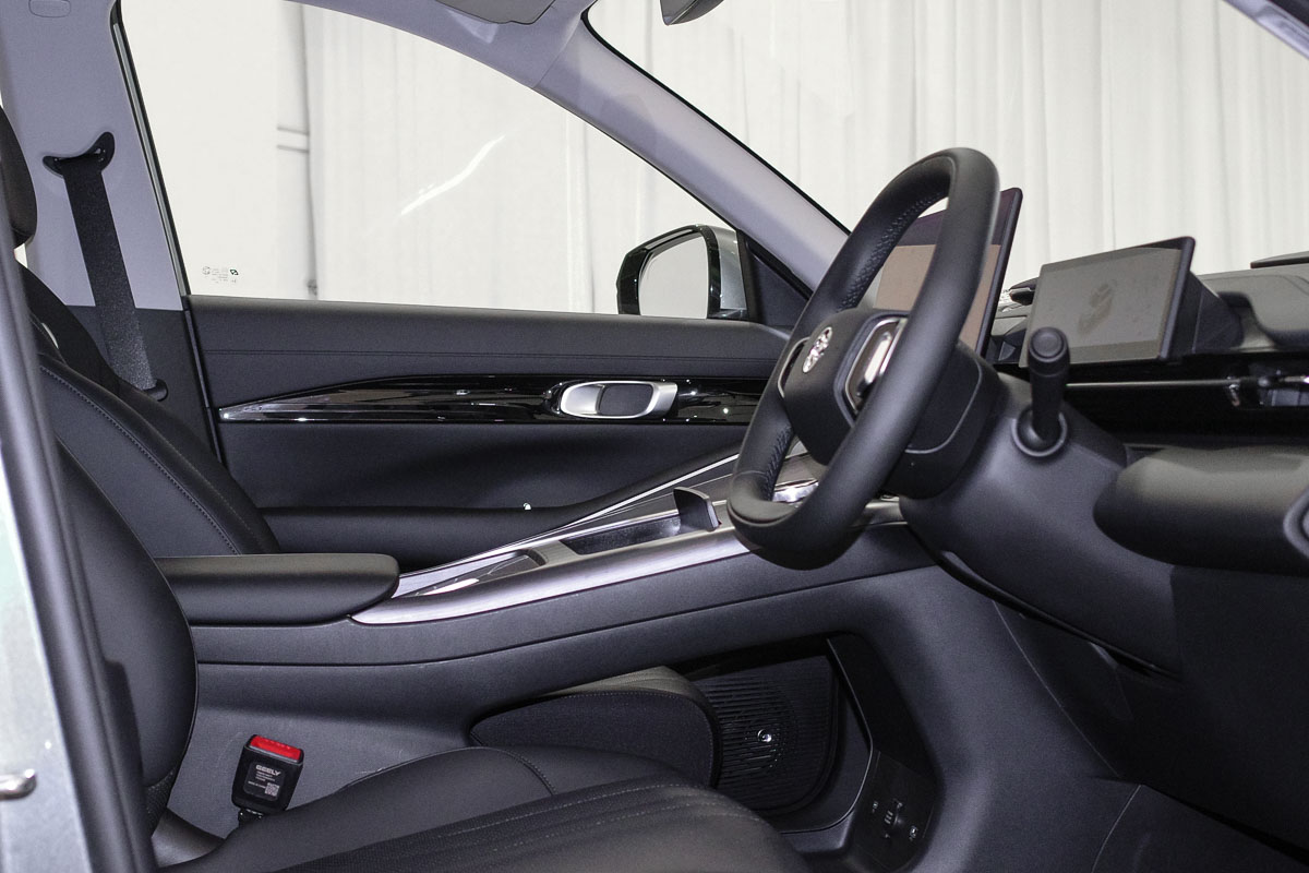 内装方面,e.MAS 7 PHEV 同样走向科技感与实用性平衡的路线。中控配备大尺寸悬浮式触控屏,整合娱乐系统、导航与手机互联功能;全液晶仪表盘与多功能方向盘则提升驾驶界面的现代感。座椅采用皮质包覆,搭配细致缝线和柔软填充,保证长途乘坐舒适性。车内储物空间与人机工程设计考虑到日常实用,整体舒适性与豪华感明显提升,对应中型 SUV 的定位需求。