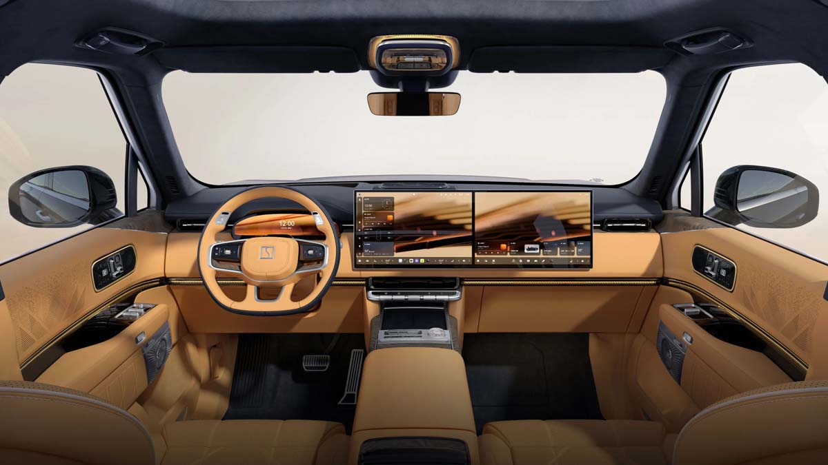 进入车内,Zeekr 9X 的重点不只是“科技多”,而是“豪华感到位”。中控台采用大量皮革、木饰板与金属饰条混搭,整体布局更偏向传统豪华而非极端未来风。大尺寸中控屏负责车载系统与多媒体功能,搭配全数位仪表与副驾娱乐屏,科技配置一应俱全。座椅强调宽大与舒适,预计会提供四座或六座高端布局,后排更是重点区域,独立行政座椅、电动调节、通风加热、按摩功能,以及高阶音响系统,都让它更像一辆可以“被司机驾驶”的豪华座驾,而不是单纯追求操控的 SUV。
