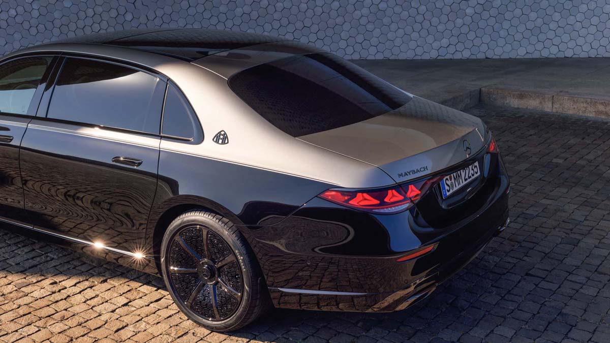 灯组设计同样加入大量专属元素,例如带有 Mercedes 三芒星图案的头灯,以及带玫瑰金点缀的细节,让整辆车在优雅之余多了一点“贵气的锋芒”。另外,C 柱上的 Maybach Logo 现在也可以发光,再加上可选的发光立标——这台车基本就是在说:“你不用猜,我就是最贵的那一台。”