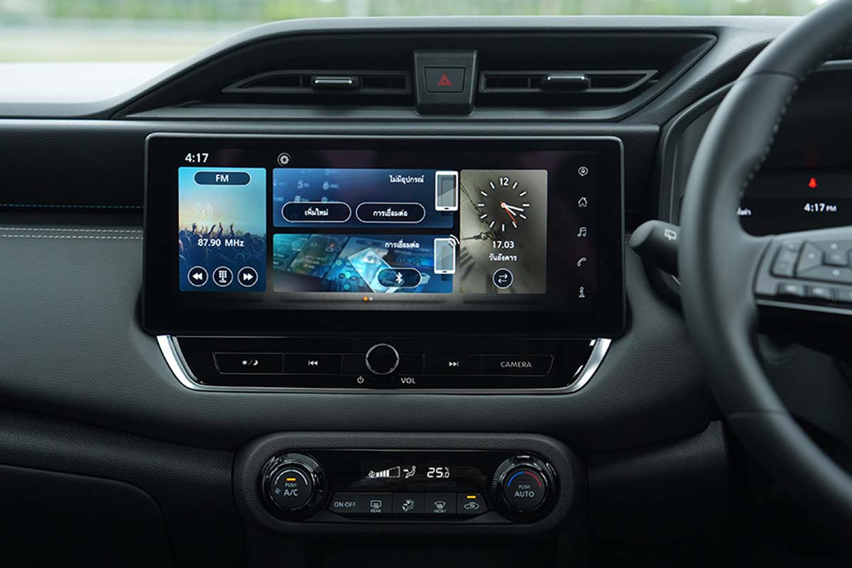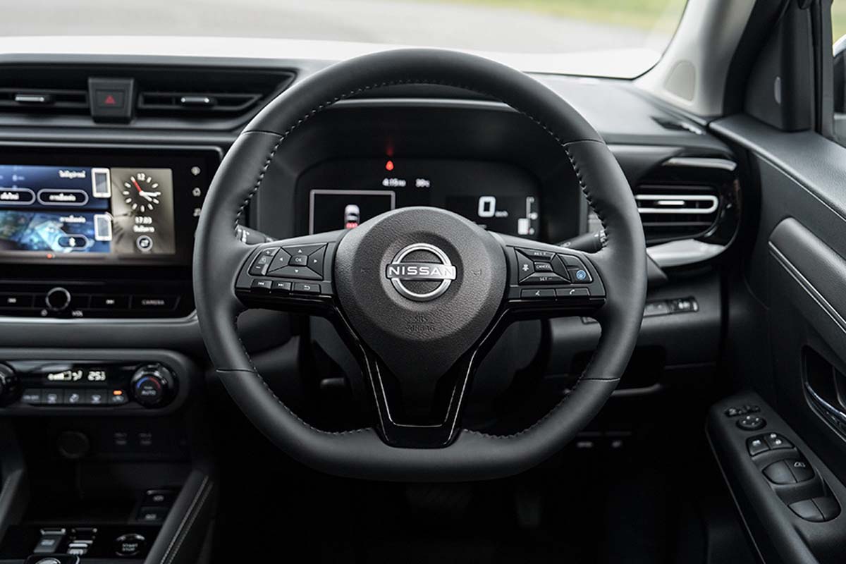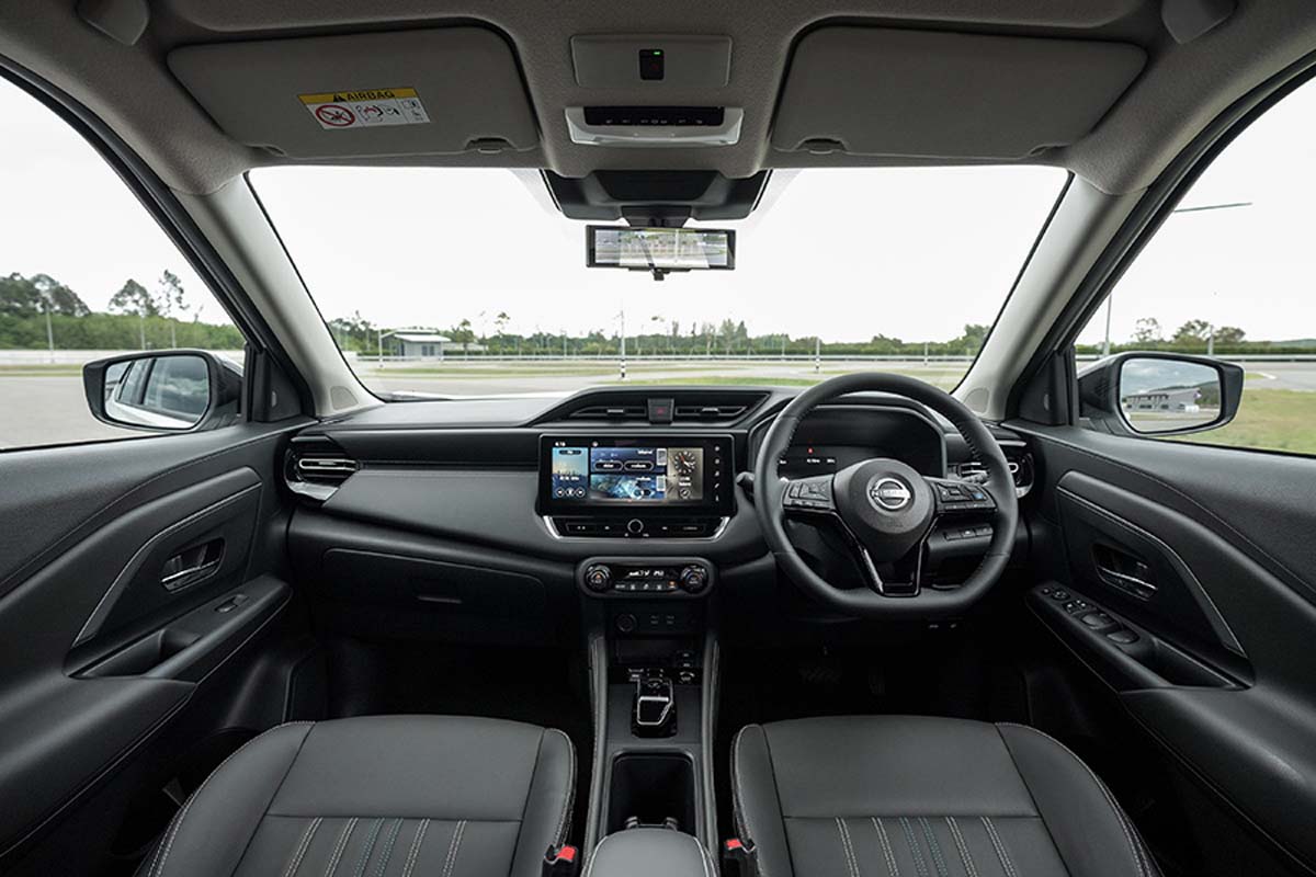 进入车内,这次的变化甚至比外观更大。中控台与 dashboard 重新设计,加入灰色 hair-line 饰板,质感比旧款更高级。配备也全面升级:高阶版本采用 12.3 寸中控屏 + 全数位仪表,入门版则是 9 寸屏幕,支援无线 Apple CarPlay 与 Android Auto,新增 3 个 USB-C 接口,提供 Nissan CONNECT 车联网服务