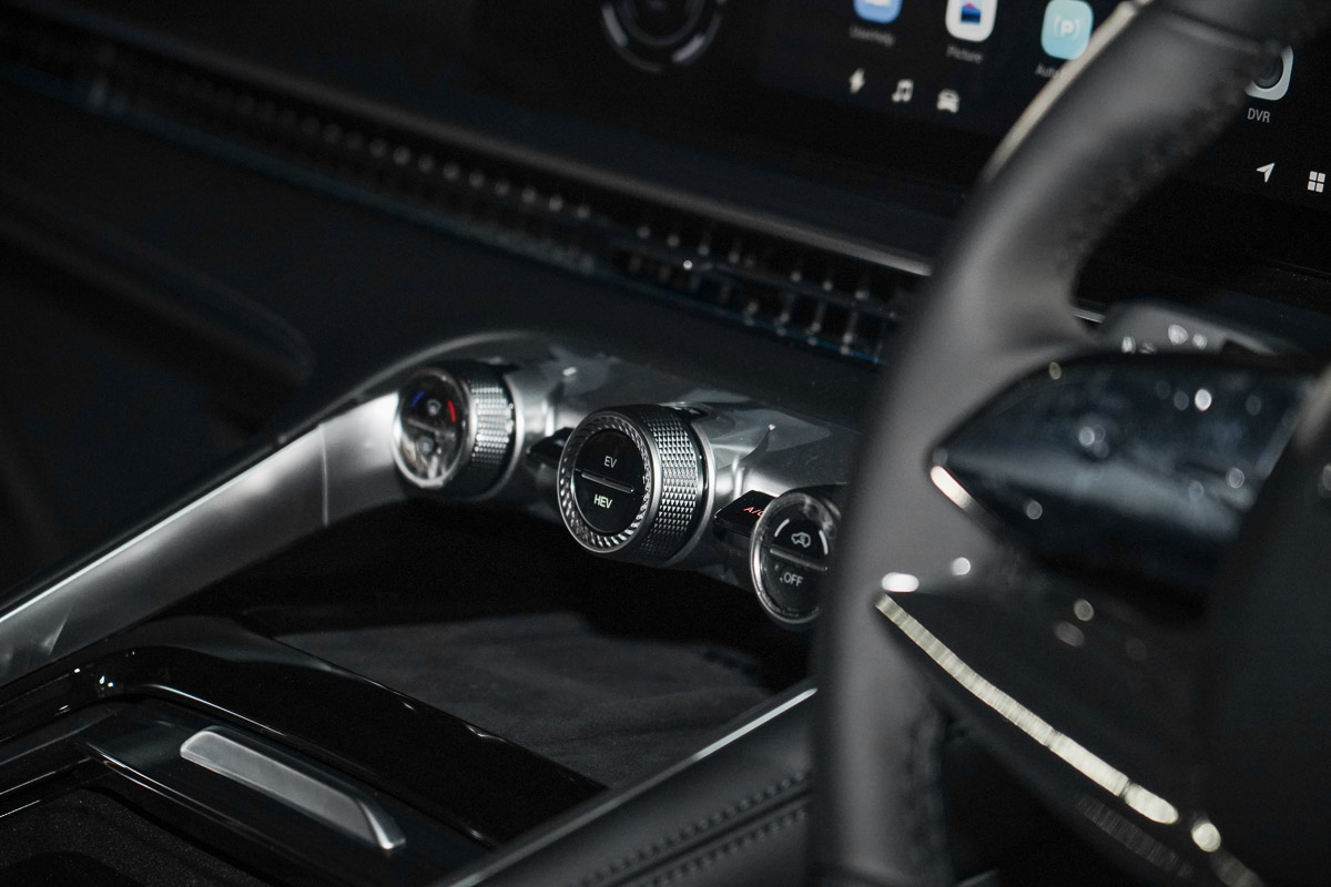 整套系统综合输出来到 537 PS 和 650 Nm,0-100 km/h 加速只需 4.9 秒,这样的数据已经不只是同级最强,甚至可以挑战不少性能SUV。更关键的是,这套系统并不是“暴力就完事”。它配备 3 速混动专用变速箱(DHT),可以在纯电、混动之间无缝切换,同时根据不同工况自动分配动力,让每一个动力来源都在最有效率的区间运作。