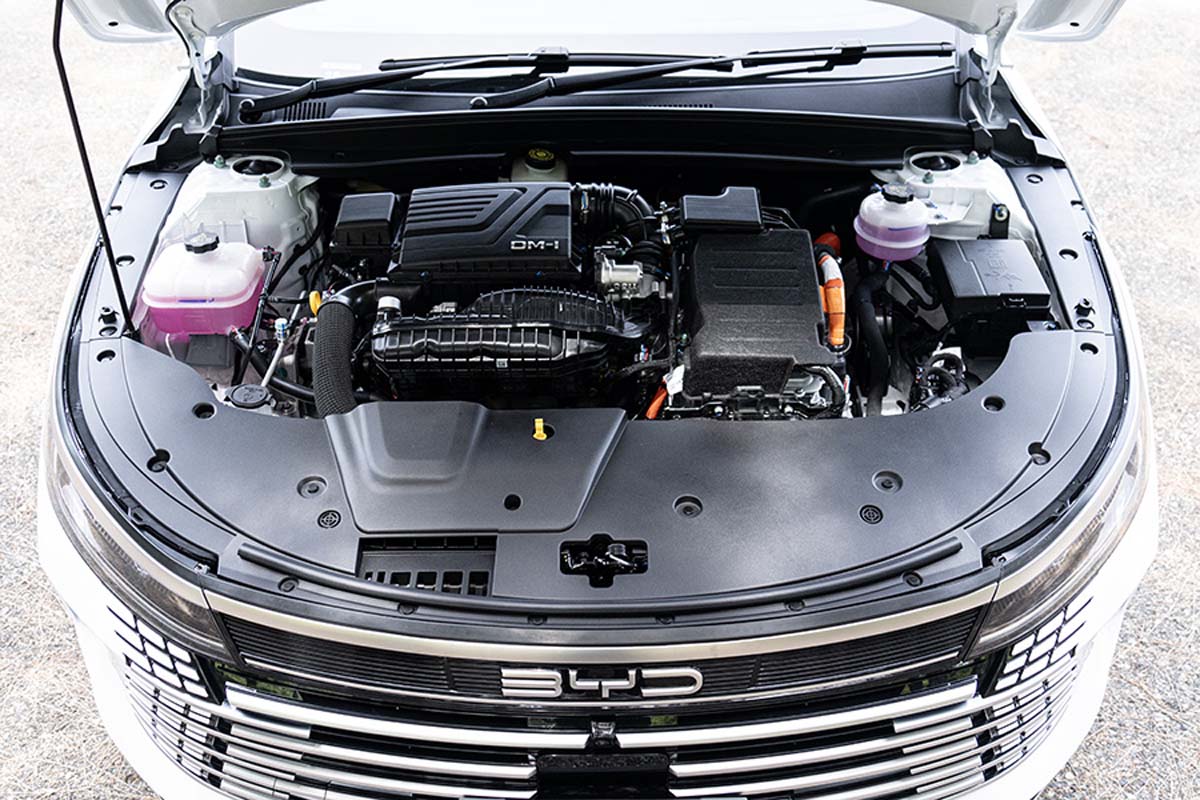 动力系统是这辆车的重点。Seal 5 DM-i 采用 BYD472QC 代号的 1.5L 四缸自然进气引擎,使用 Atkinson 循环设计,压缩比高达 15.5:1,最大输出 98 PS,峰值扭矩 122 Nm,可对应 Gasohol E20 燃油。电动部分搭载永磁同步电机,最大输出 197 PS,峰值扭矩 300 Nm。当引擎与电机协同运作时,综合最大功率来到 218 PS,扭矩维持 300 Nm,并通过前轮驱动布局输出。