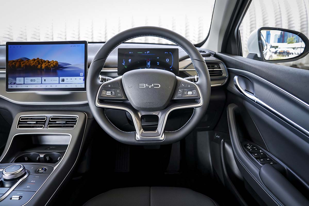 Dynamic 版本则进一步升级 12.8 寸中控屏、电动驾驶座、合成皮座椅、6 扬声器、BYD Digital Key 以及连接 BYD App 的车联网功能,整体质感更贴近中高阶车款。
