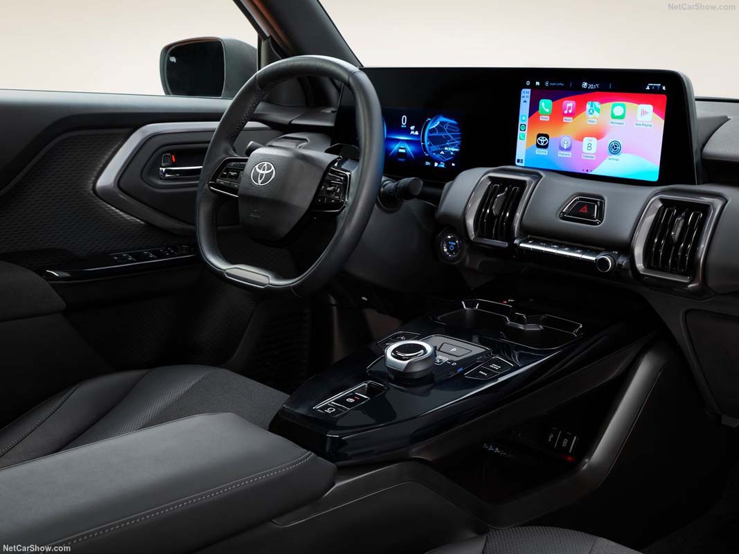来到车内,Urban Cruiser EV 会采用双联屏设计,包括全液晶仪表与中控触控屏幕,并支援 Apple CarPlay 与 Android Auto。整体布局偏向简洁现代风格,同时会加入电子排挡、无线充电板以及多功能方向盘等配置。以 Toyota 近年来的趋势来看,这款车也很大概率会配备 Toyota Safety Sense 主动安全系统,包括自适应巡航、车道维持辅助、自动紧急刹车等功能,这对于入门电动车来说是一个加分点。