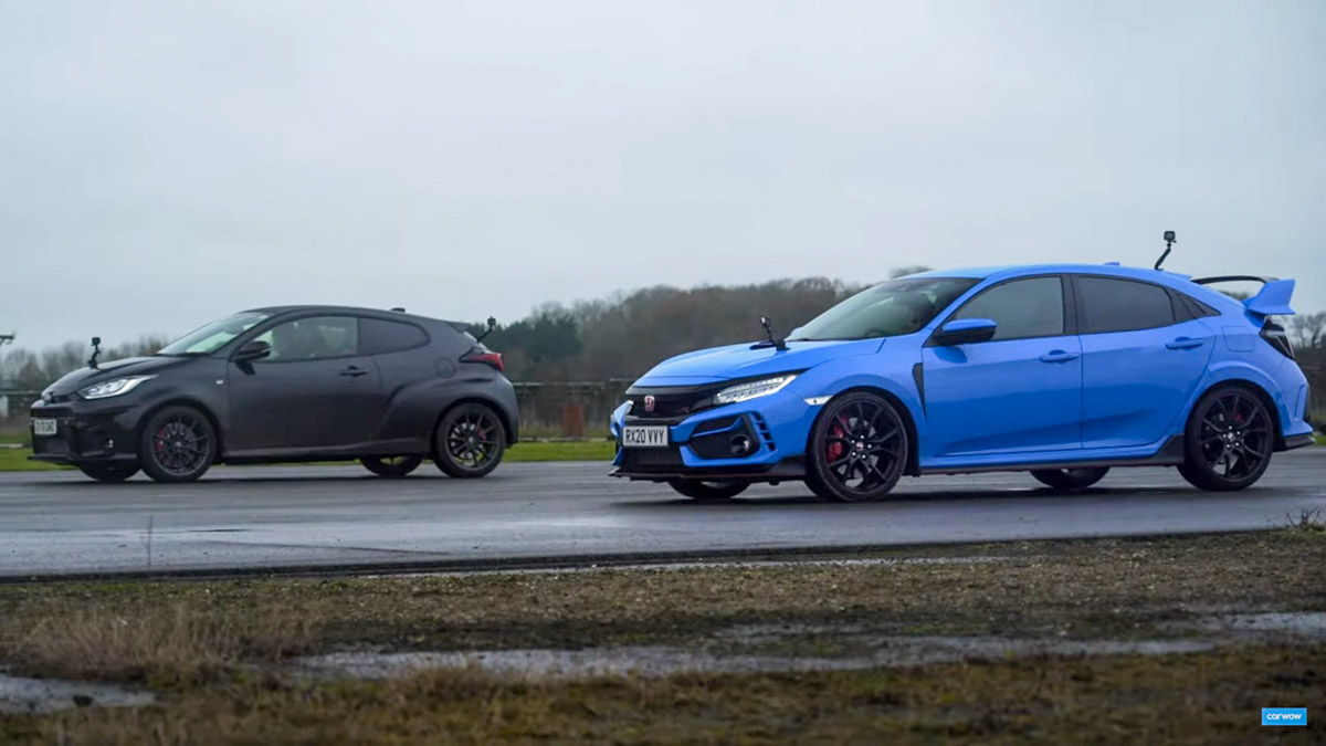 两大日系钢炮对决!英国媒体 Carwow 日前将号称地表最强1.6L三缸的 Toyota GR Yaris 以及曾经的纽柏林最速前驱 Honda Civic Type R FK8 来个巅峰对决,一个输出较高,但另一个则拥有全驱的优势,究竟谁会最先冲出零四的终点线?