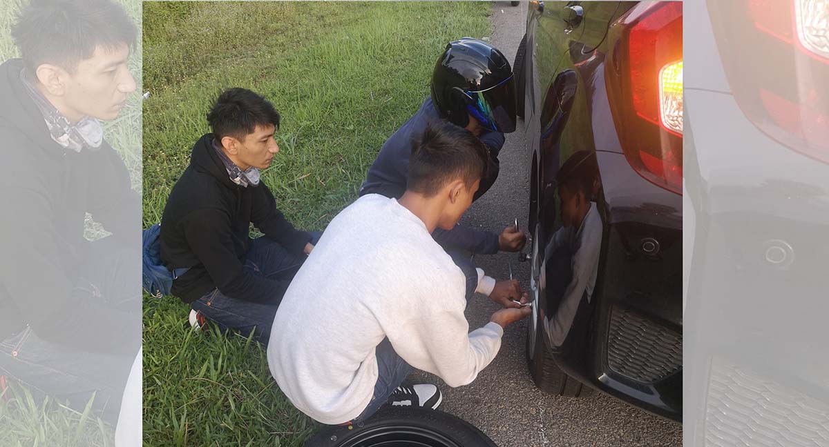 这个世界依然有很多很美好的事情!近日一名女子趁着连假从吉隆坡返回 Johor ,但是在 Plus 高速公路上面爆胎而手足无措,不过幸好获得了三名友族电单车骑士的帮忙因此完成更换轮胎的工作,她更表示“谢谢你们让我相信世界上还有希望”!