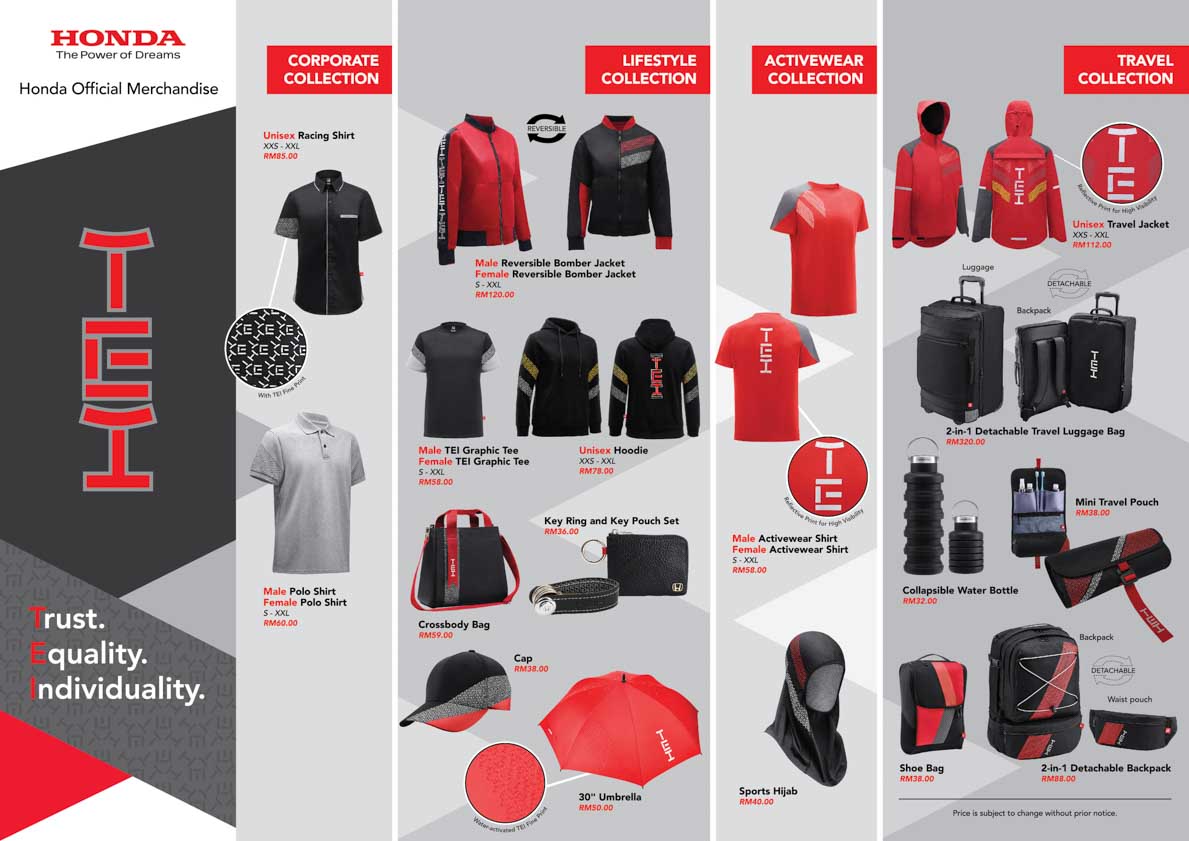 Honda 除了制造汽车以外,还有推出摩托车,那日前 Honda Malaysia 更是推出了名为 TEI 的官方商品,而这官方商品是 Honda 迷们超喜欢的衣服,钱包,背包,雨伞,行李箱,帽子以及水瓶!重点是售价由 RM32 起跳罢了!Honda 迷们,是时候去 Shopping 了!